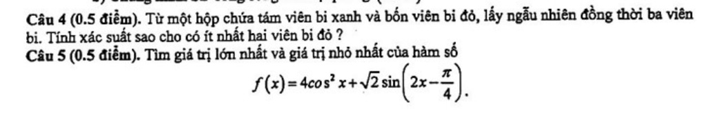 Do: - \sqrt 2 \le \sqrt 2 \left( {\sin 2x + \frac{\pi }{4}} \right) \le \sqrt 2 \forall x\\