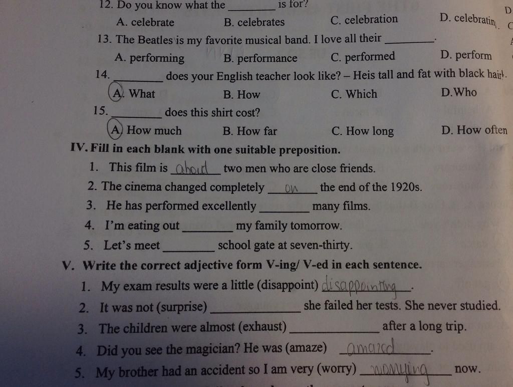 does your English teacher look like? - Heis tall and fat with black hairt.