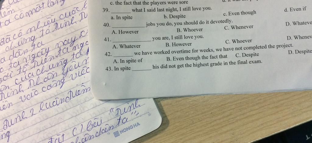 36... the increase in their salaries, many french employees spend saturday at work A. Despite B. Even if C. Even though D. Ínpte