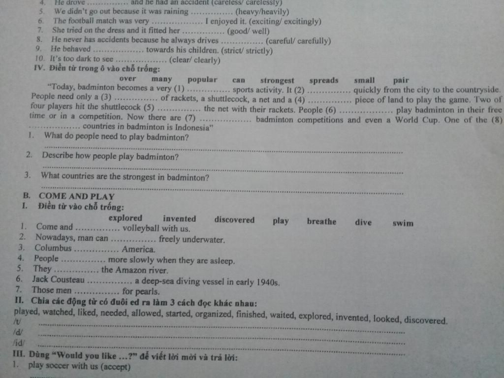 1. people need only a pair of rackets, a shuttlecock, a net and a small piece of land to play the game.