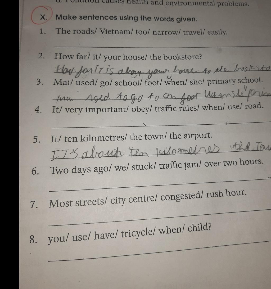 3. Mai used to go to school on foot when she was in primary school ( used to+ Vinf : dùng để diễn tả 1 hành động ở quá khứ nhưng giờ không còn nữa, nghĩa: Mai từng đi bộ đến trường khi cô ấy còn học tiểu học )