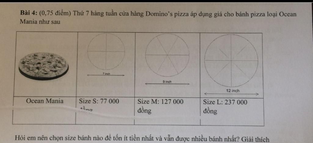 Vậy chọn bánh size M đê tốn ít tiền và được nhiều bánh nhất.