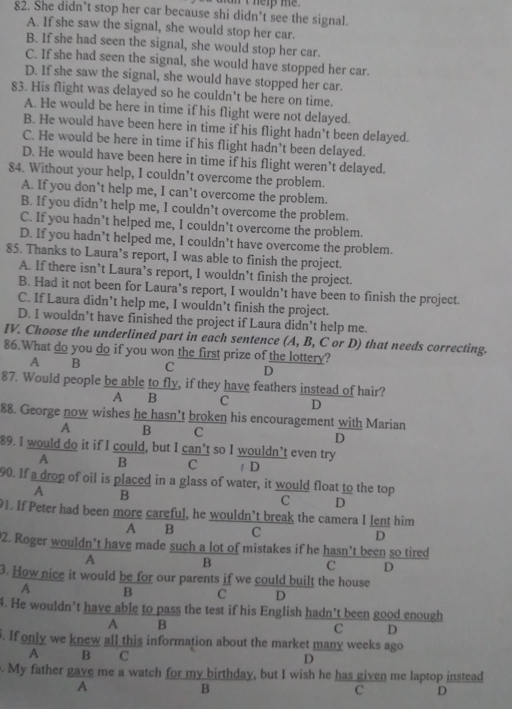 IV. Choose the underlined part in each sentence (A,B,C or D) that needs correcting