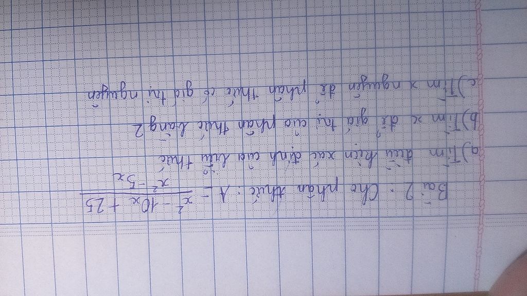 b, $A=\dfrac{x^2-10x+25}{x^2-5x}=\dfrac{(x-5)^2}{x(x-5)}=\dfrac{x-5}{x}$