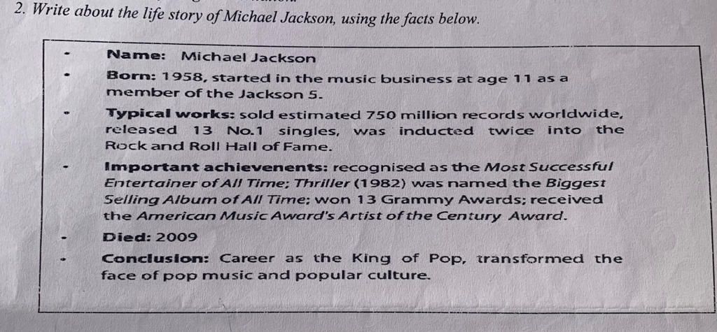 2. Write about the life story of Michael Jackson, using the facts below.