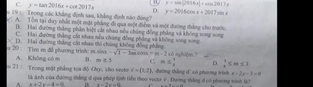 C, Hai đường thẳng đồng phẳng và không song song thì có thể cắt nhau hoặc trùng nhau vì đề không cho 2 đường thẳng phân biệt.