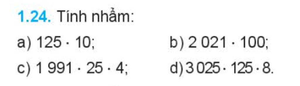 $a) 125 · 10=125\\b) 2 021 · 100=202100\\c) 1 991 · 25 · 4=199100\\d)3 025. 125 · 8=3025000$