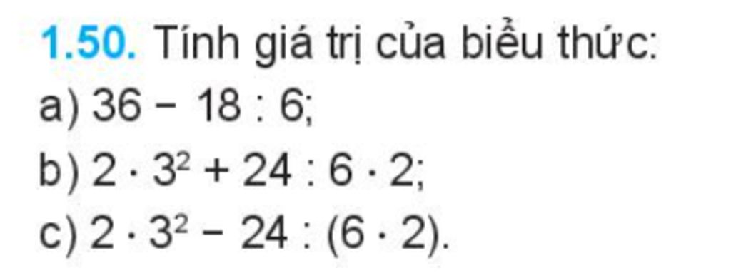 $\\a) 36 – 18 : 6\\=36-3\\=33$
