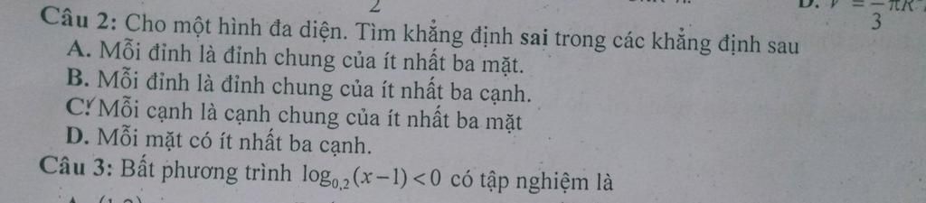 2.C vì mỗi cạnh là cạnh chung của ít nhất 2 mặt.