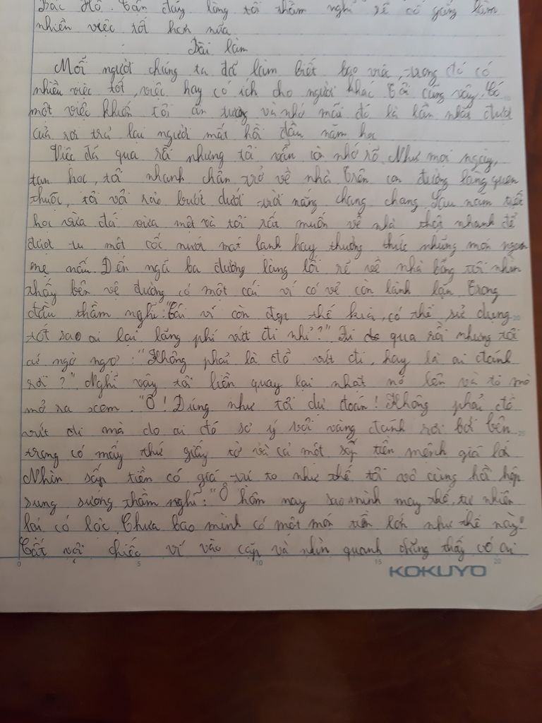 Tôi cũng thấy rất vui vì đã làm được việc tốt và khiến cha mẹ vui lòng. Tôi cũng thấy rất hãnh diện về mình. Tuy là câu chuyện đã xảy ra khá lâu nhưng nó mãi in sâu vào tâm trí tôi.