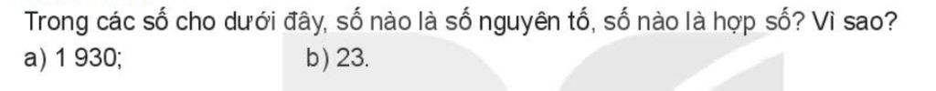 b) Số $23$ chỉ có $2$ ước là $1$ và $23$ nên số $23$ là số nguyên tố.