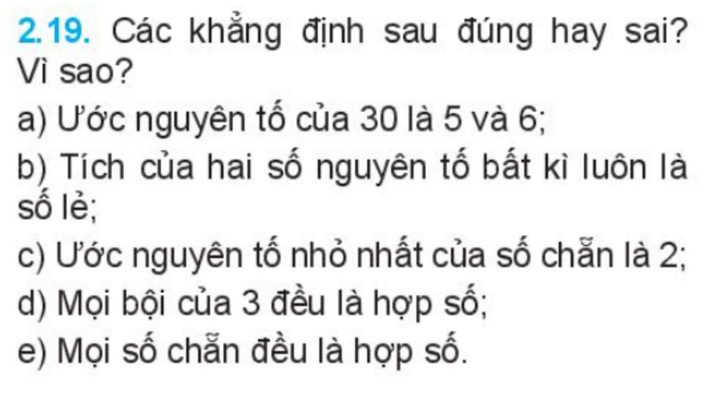 e) Sai, vì $2$ là số chẵn nhưng cũng là số nguyên tố.