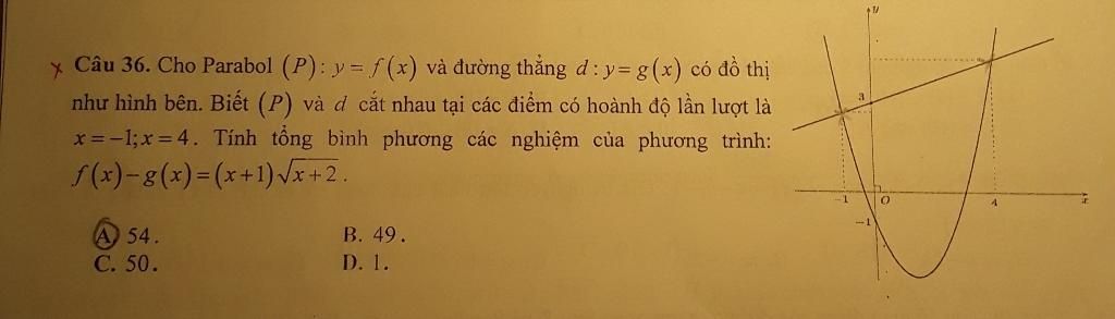 * Câu 36. Cho Parabol (P): y=f(x) và đường thắng d: y= g (x) có đồ thị