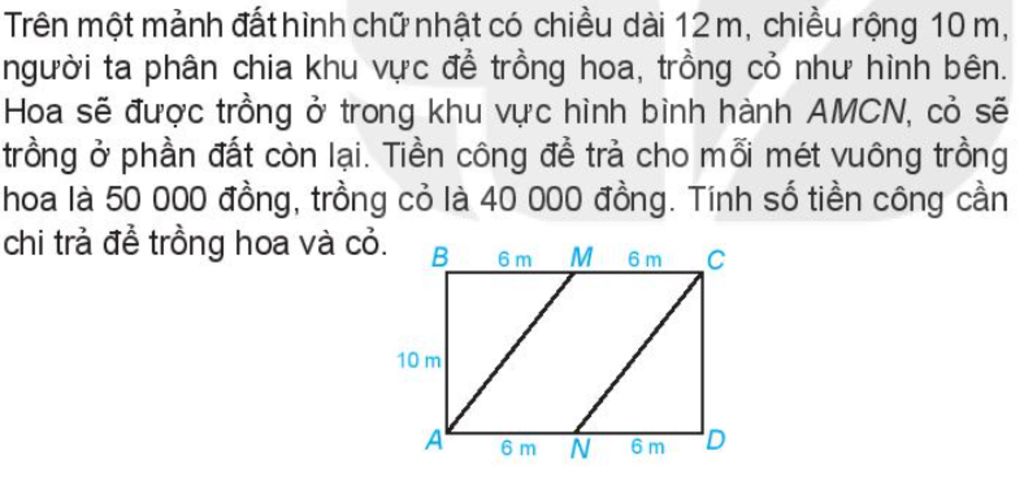 Số tiền công cần chi trả để trồng hoa và cỏ là: