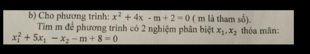 Để `x_1^2+5x_1-x_2-m+8=0`