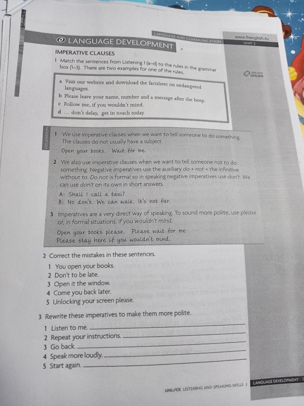 1 Match the sentences from Listening 1 (a-d) to the rules in the grammar