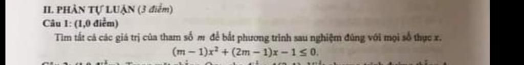 TH2 m $\neq$ 1 <=>$\left \{ {{m< 1} \atop {△\geq0 }} \right.$ <=> $\left \{ {{m<1} \atop {(2m-1)^2-4.(m-1).(-1)\geq0 }} \right.$ <=> $\left \{ {{m<1} \atop {(2m-1)^2+4(m-1)\geq0 }} \right.$ <=> $\left \{ {{m<1} \atop {4m^2-4m+1+4m-4\geq0 }} \right.$ <=> $\left \{ {{m<1} \atop {4m^2-3\geq0 }} \right.$