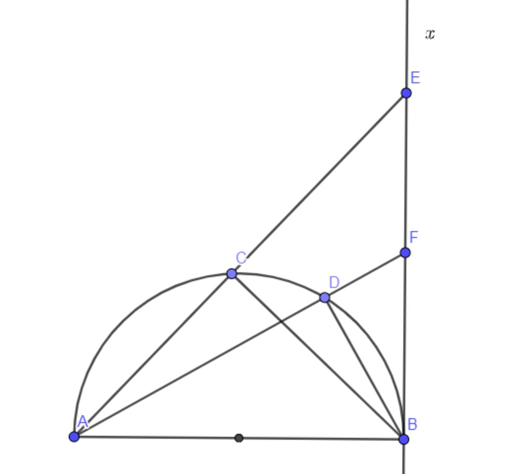 $\text{Xét nửa đường tròn đường kính AB có: Bx là tiếp tuyến, B là tiếp điểm}$