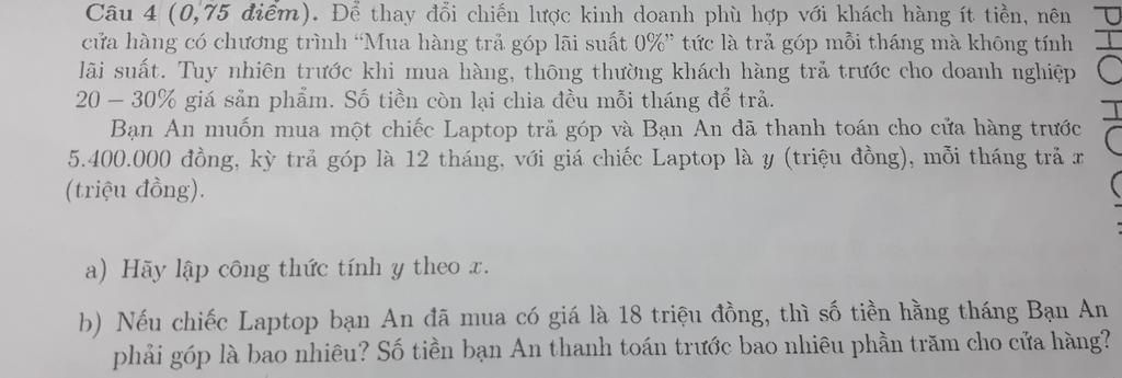 x=$\frac{18000000-5400000}{12}$ = 1 050 000 đồng
