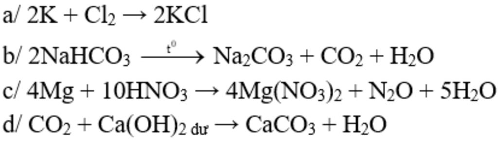d. CO2 + Ca(OH)2 dư → CaCO3 + H2O