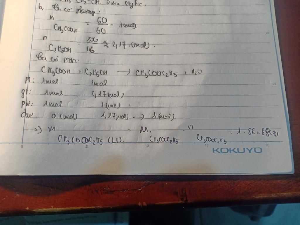 ⇒ C2H5OH dư tính theo CH3COOH