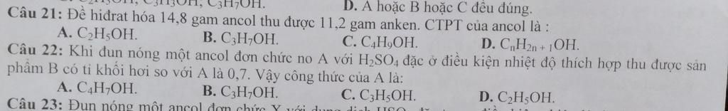 Vậy CT ancol là $C_3H_7OH$