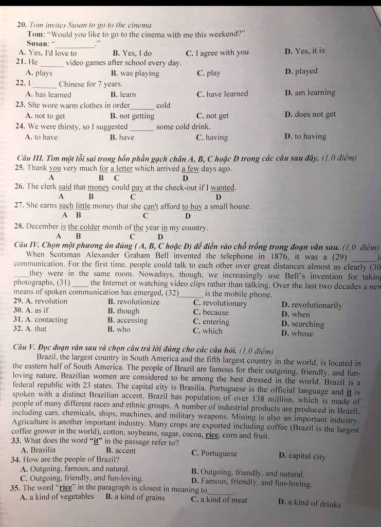 20. A ( Would you like ..... ? → Yes, I'd love to/ No, thanks )