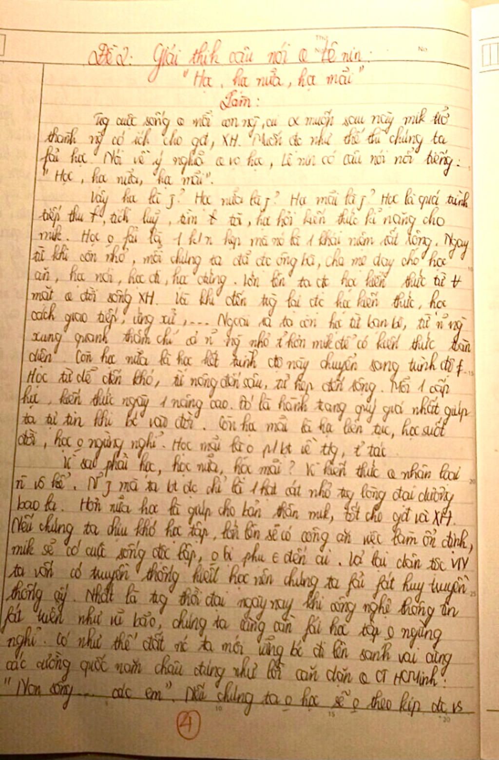 Khi còn ngồi trên ghế nhà trường, nhiệm vụ cao cảcủa các em là chăm ngoan, học giỏi. Bởi vì sao ? Vì học sẽ mang lại hiểu biết cho chúng ta, là cả một bầu trời kiến thức đang đợi ta tiếp thu, là phương tiện sẽ giúp ta vững bước trong cuộc sống và còn là bàn đạp cho bước tiến thành công tốt đẹp về mai sau. Và quan trọng là các bạn phải học làm sao cho đúng cách, hợp lí để mang lại sự hữu ích từ đó. Và đừng ngồi ngay người ra mà dùng từ ''Học'' cho có, hãy học thật chăm chú và quyết tâm.