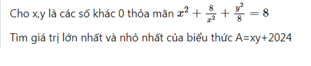\Rightarrow A = xy + 2024 \Leftrightarrow - 8 + 2024 \le A \le 8 + 2024 \Leftrightarrow 2016 \le A \le 2032