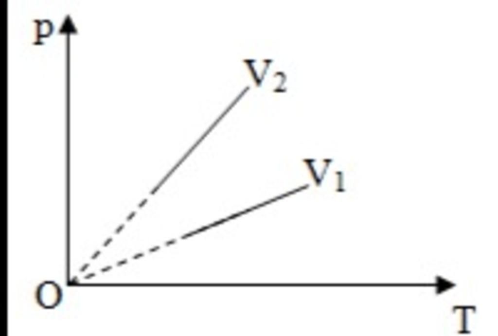 Ứng với các thể tích khác nhau của cùng một lượng khí ta có những đường đẳng tích khác nhau. Đường ở trên ứng với thể tích nhỏ hơn.