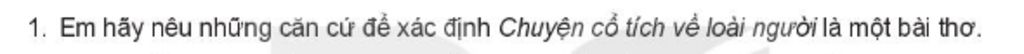 Những căn cứ để xác định Chuyện cổ tích về loài người là một bài thơ vì văn bản thơ có nhiều dòng thơ, mỗi dòng thơ có 5 chữ và bài thơ có nhịp, có vần được ngắt nghỉ.