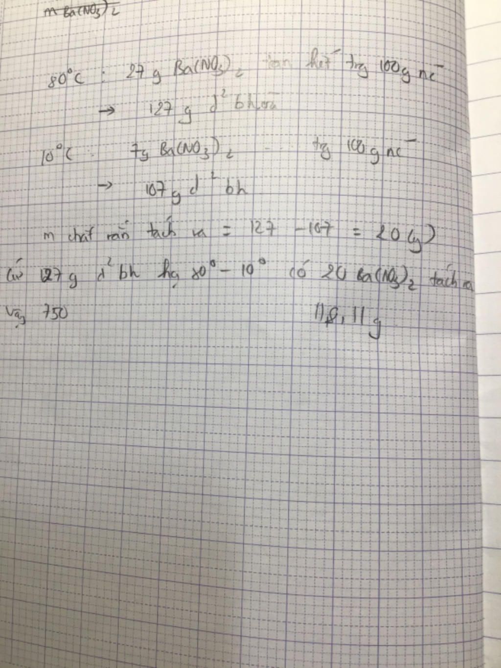 ${m_{Ba{{(N{O_3})}_2}}} = {m_{ct(1)}} - {m_{ct(2)}} = 159,45 - 41,34 = 118,11g$