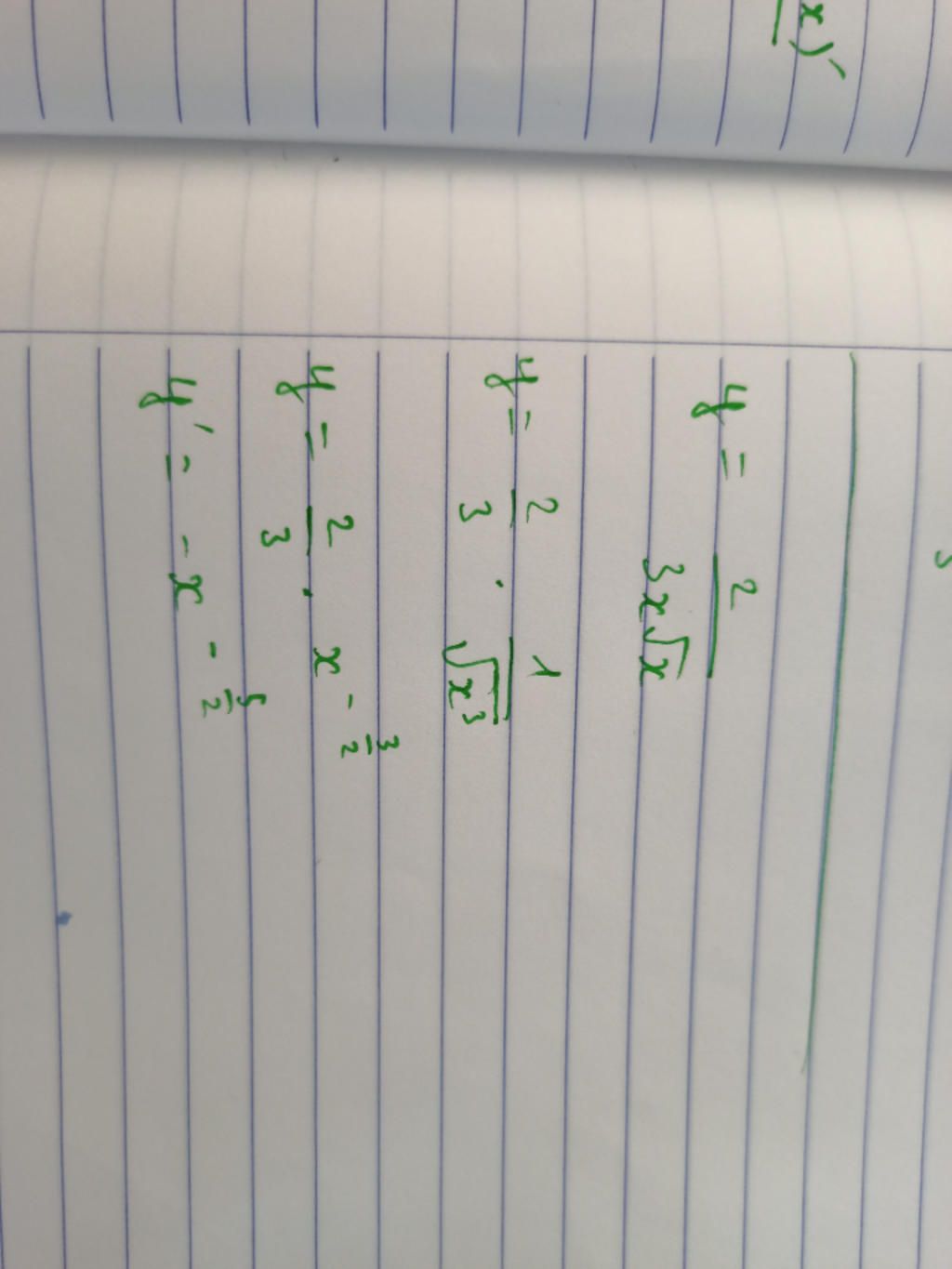 `=> y' = -2/3. \frac{\frac{3x}{2\sqrt{x}}}{(x\sqrt{x})²}`