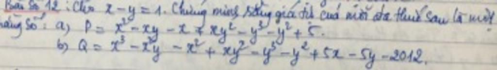 $\to Q=x^2-x^2+y^2-y^2+5-2012$ vì $x-y=1$
