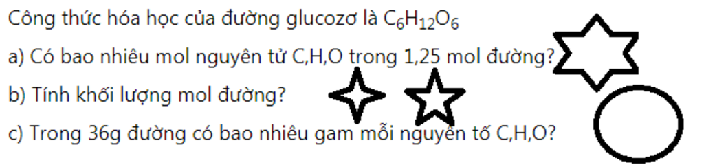 a, Trong 1 mol C6H12O6 có 6 mol C, 12 mol H, 6 mol O