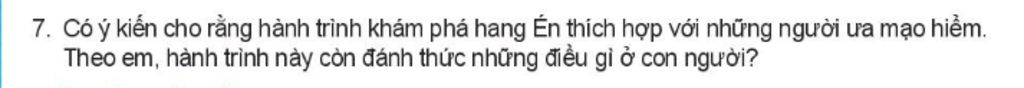 Có ý kiến cho rằng hành trình khám phá hang Én thích hợp với những người ưa mạo hiểm. Theo em, hành trình này còn đánh thức những điều gì ở con người?