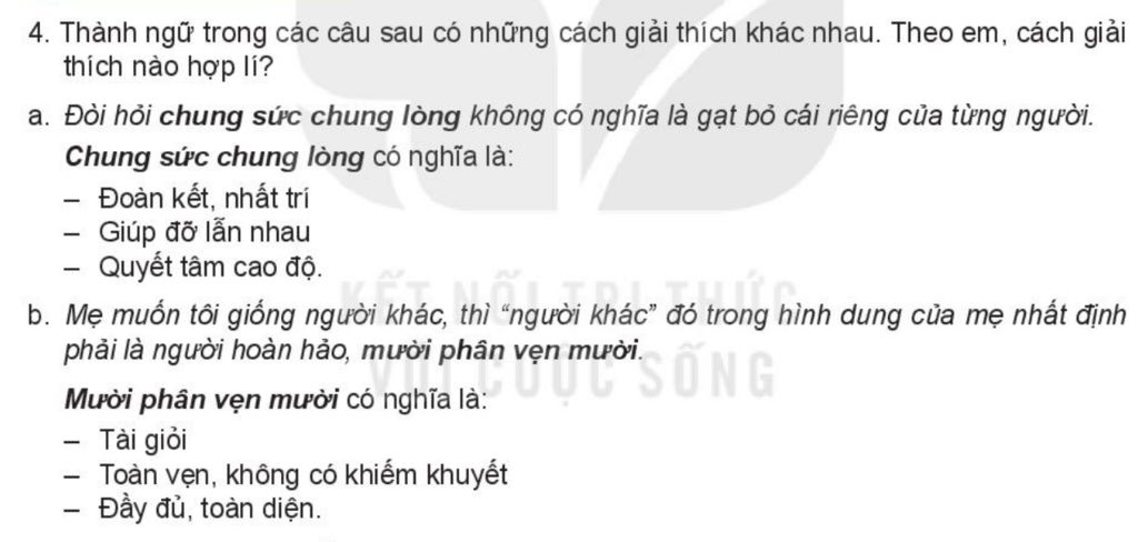 b, Cách giải thích mười phân vẹn mười hợp lý là: