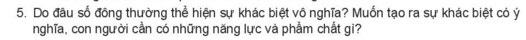 + Muốn tạo ra sự khác biệt có ý nghĩa, con người cần có những năng lực và phẩm chất như sự tự tin, sự nhận thức về thực tế.