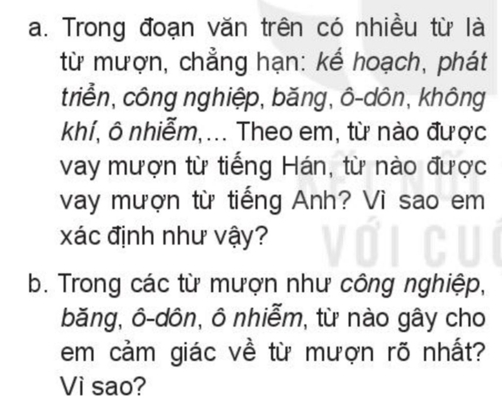 b, Từ ô-dôn mang cho em cảm giác về từ mượn rõ ràng nhất. Vì nó bắt nguồn từ từ tiếng Anh "ozone"