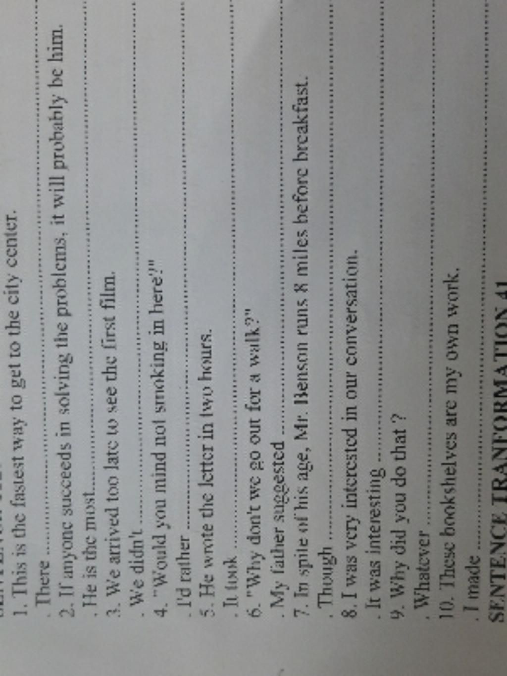 1. There are no faster ways to get to the city center ( không còn đường nào nhanh nhất để tới trung tâm thành phố )