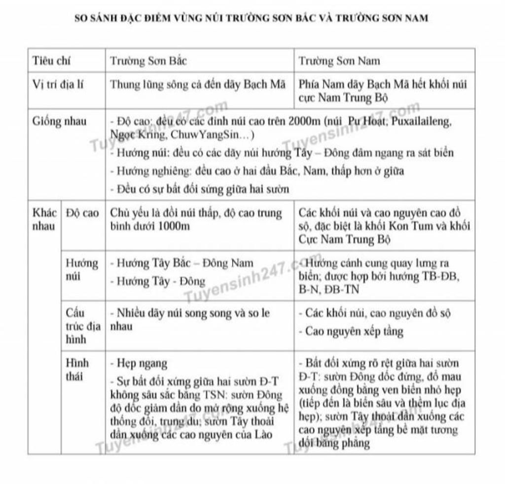* Sự khác, giống giữa cùng núi trường sơn bắc và trường sơn nam: