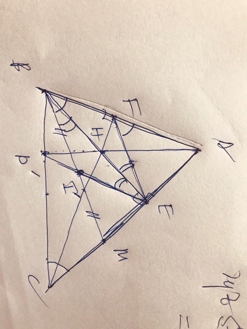 Vẽ đường cao $AH$ cắt $BC$ tại $D’$ nối $ED’$ cắt $BM$ tại $I’ => EB$ là tia phân giác góc $D’EF$, đến đây nếu hiểu thì tớ nói típ