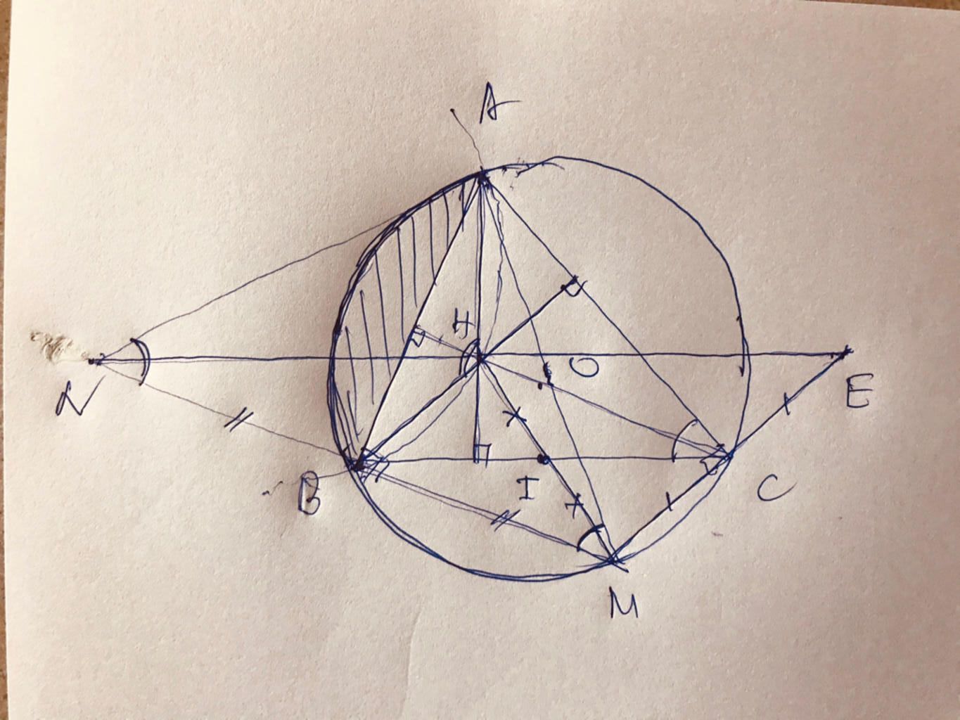 $ ⇒ HN//BI; HE//CI ⇒ N; H; E$ thẳng hàng.