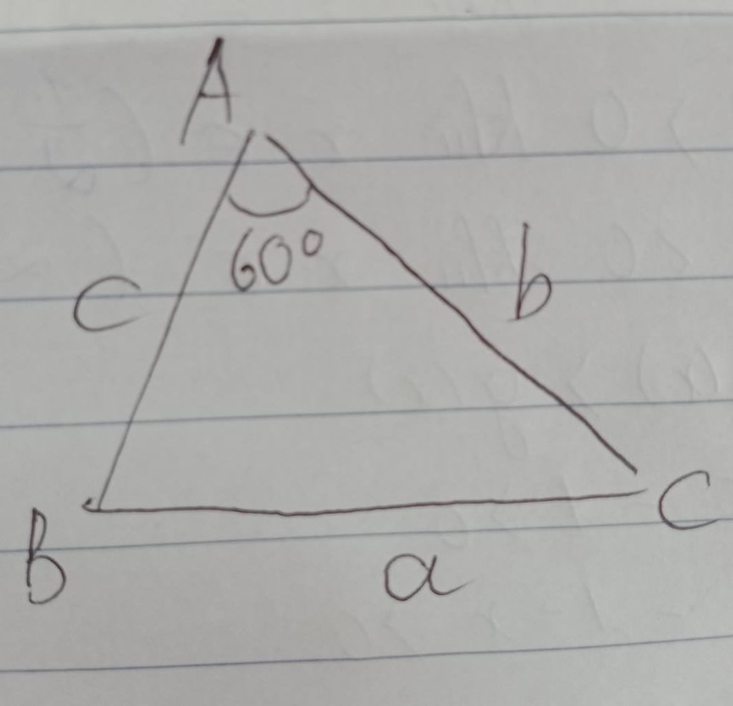 c=$\sqrt[]{3^2+4^2-2.3.4.cos60}$ => $\sqrt[]{13}$