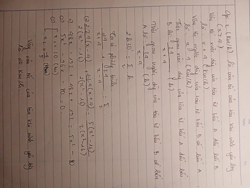 thời gian tàu đi hết quãng đường ab khi ngược dòng :