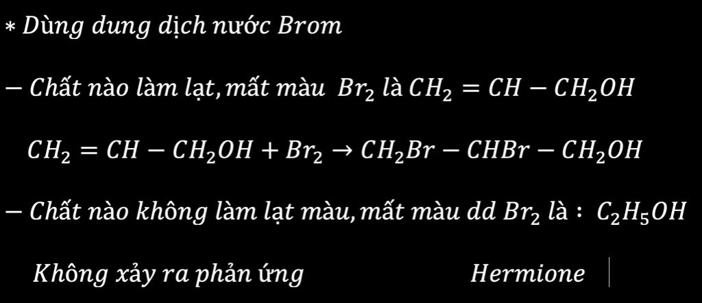 $CH_2=CHCH_2OH$ làm nhạt màu brom trong dung dịch, còn $C_2H_5OH$ không phản ứng.