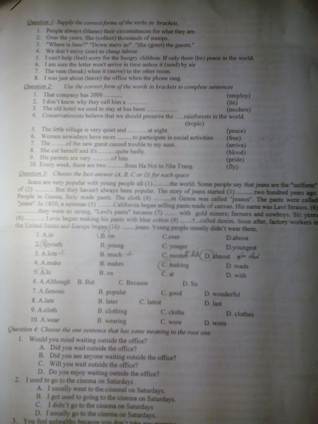 Question 3: 1. C 2. A 3. D 4.D 5.A 6. C 7. B 8. B 9. A 10. B