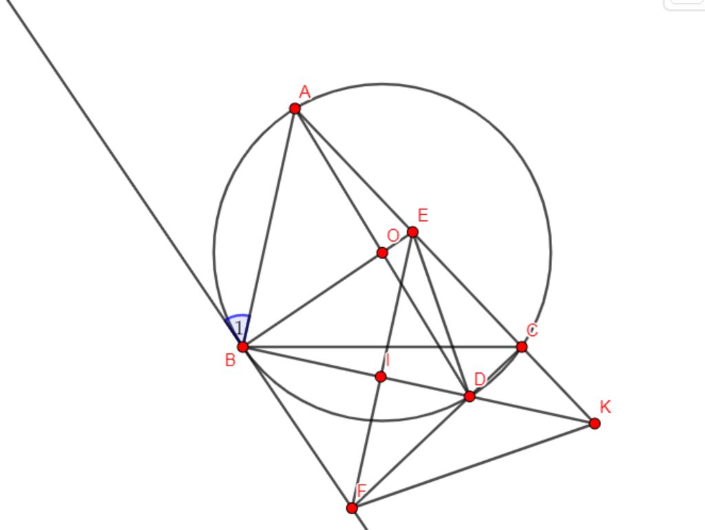 ⇒ $\widehat{ABD}=90°$ (góc nội tiếp chắn nửa đường tròn) ⇒ BK ⊥ EF tại I ⇒ KI ⊥ EF