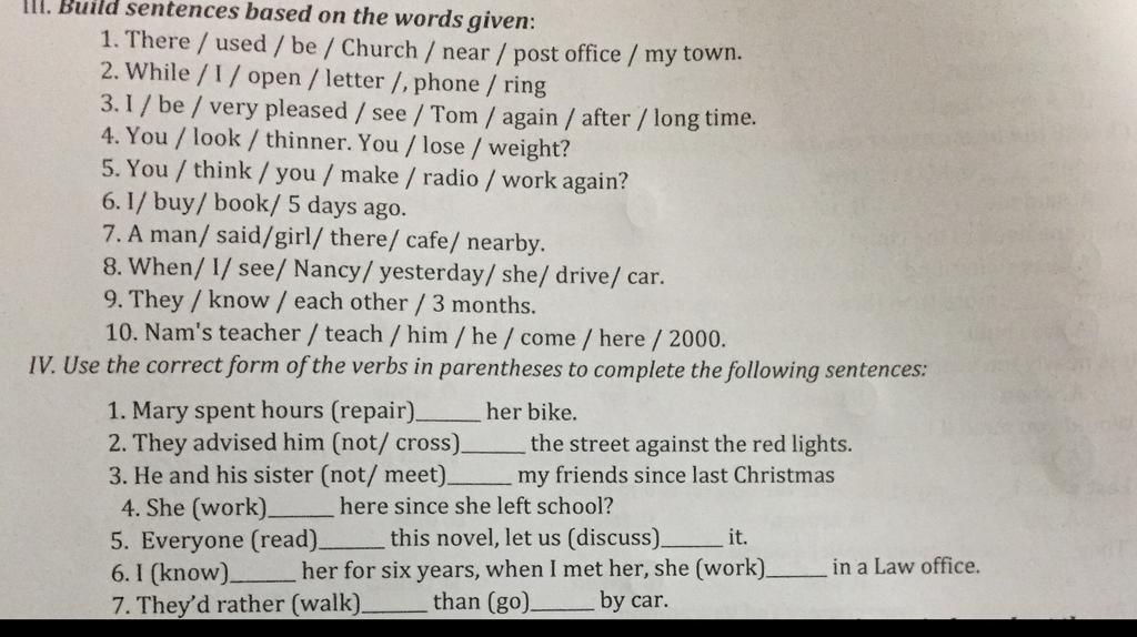 10. Nam's teacher/teach/him/he/come/here/2000.