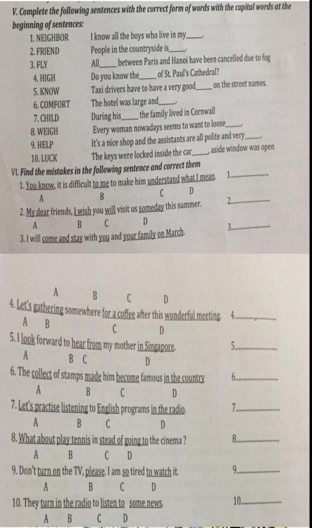 9. D → of watching